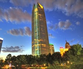 Man climbing Devon tower. Oklahoma City